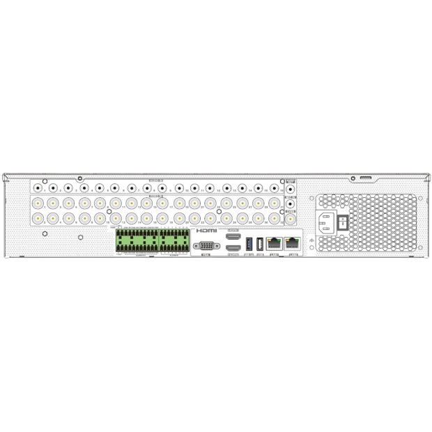 | Frame Rate | Analog Channel: 4K@8fps(PAL / NTSC); 4K Lite@12/15fps(PAL / NTSC); 5MP @12fps (PAL / NTSC); 5MP Lite@20fps(PAL / NTSC); 4MP/3MP@12/15fps(PAL / NTSC); 4MP Lite/1080P /720P/WD1/D1@25fps (PAL) / 30fps (NTSC) IP Channel: 25fps (PAL) / 30fps (NTSC) |